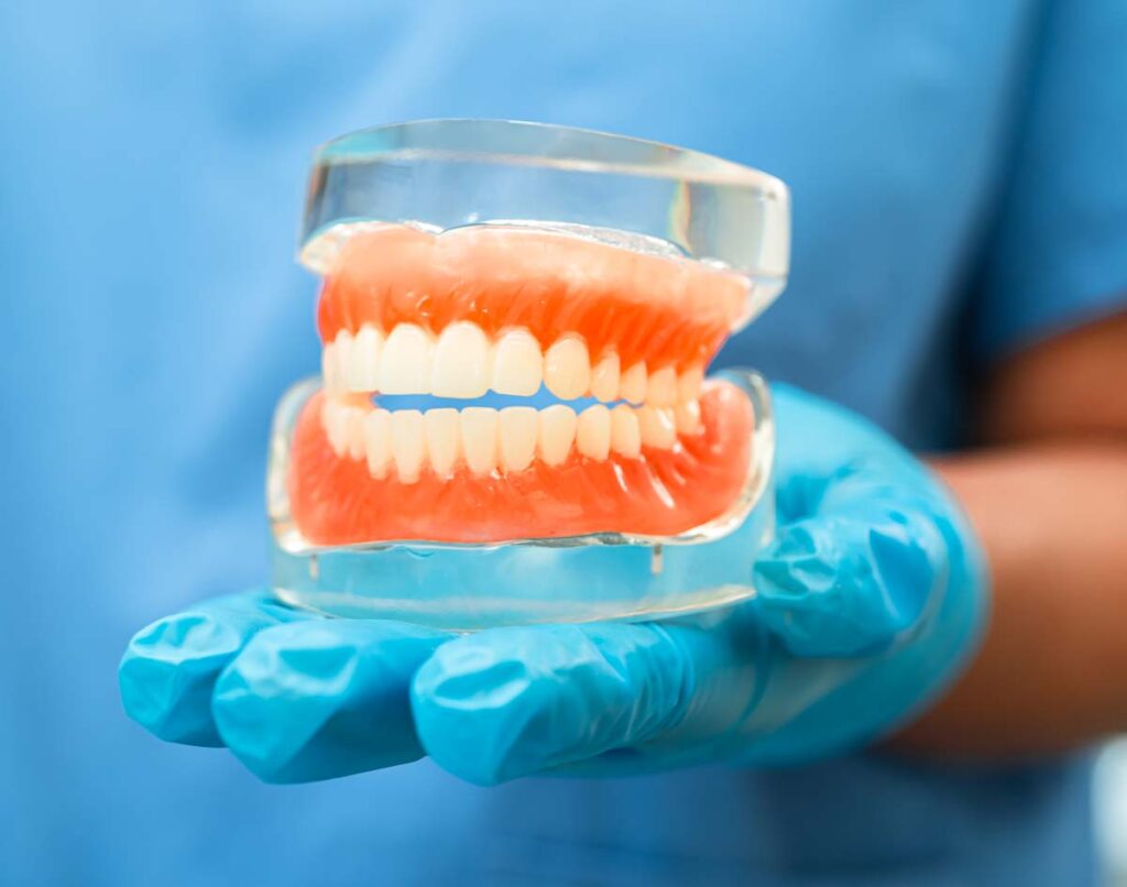 Our dentists work with different materials such as titanium, glass, porcelain, zirconium dioxide or polymers to make crowns on teeth or implants, veneers, onlays and partial or total dentures.
